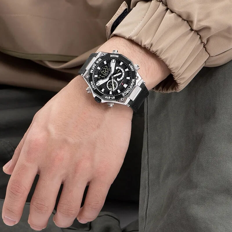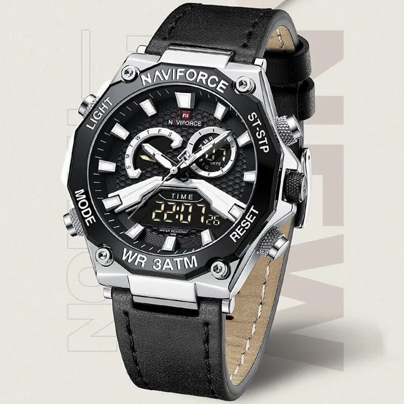 NAVIFORCE NF9220 Fashion Dual Display Chronograph Watch For Men – Black/Silver